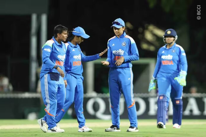 टॉस जीतकर भारत ने एलन बॉर्डर फील्ड पर पहले बल्लेबाज़ी चुनी। ऑस्ट्रेलिया को आखिरी समय में तेज़ गेंदबाज़ मेगन शुट और लूसी हैमिल्टन को टीम में शामिल करना पड़ा क्योंकि किम गार्थ और एलिस पेरी चोट के कारण पूरी सीरीज से बाहर हो गईं।