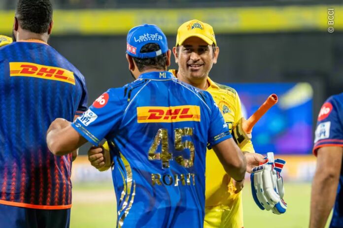गुरुवार को मुंबई इंडियंस और चेन्नई सुपर किंग्स के बीच होने वाले आईपीएल मुकाबले से पहले, भले ही रोहित शर्मा और एमएस धोनी को अभी आधिकारिक तौर पर खेलने की मंजूरी नहीं मिली है, लेकिन दोनों ने बुधवार को मुंबई में नेट्स में अपनी-अपनी टीम की ट्रेनिंग किट पहनकर बल्लेबाजी की।