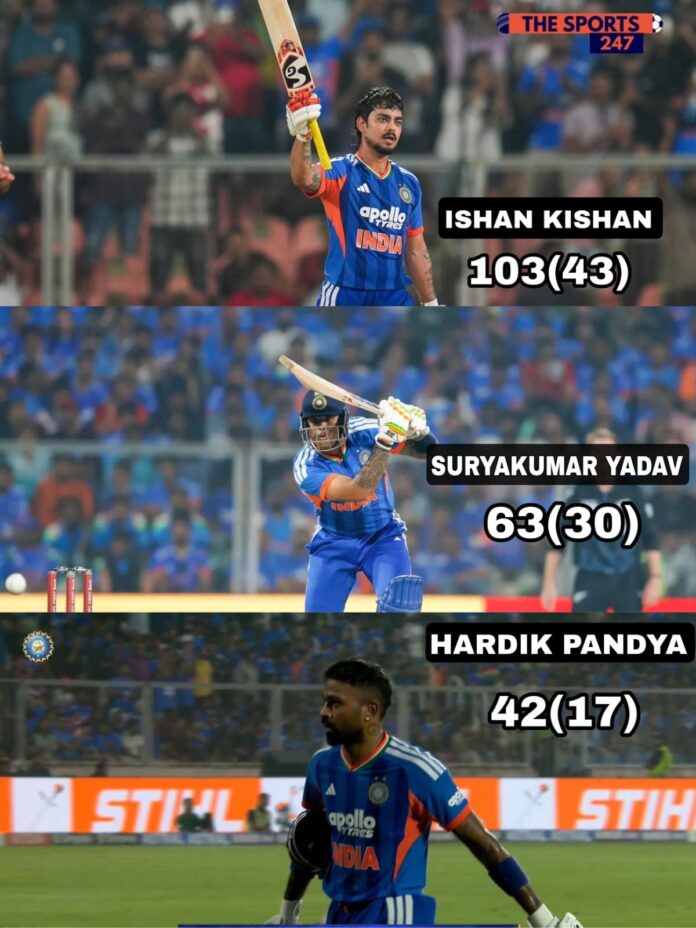 सिर्फ 10 ओवर से कुछ ज़्यादा समय में तीसरे विकेट के लिए 137 रन की साझेदारी के दौरान, कप्तान सूर्यकुमार यादव (63, 30 गेंद, 4×4, 6×6) और किशन (103, 43 गेंद, 6×4, 10×6), जिन्होंने इस फॉर्मेट में अपना पहला शतक लगाया, ने कीवी गेंदबाजों के साथ पूरी तरह से खिलवाड़ किया।