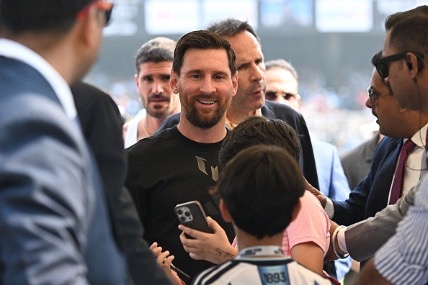 करीब सुबह 11:30 बजे, वर्ल्ड कप विजेता कप्तान मेसी अपने अर्जेंटीना साथी रोड्रिगो डी पॉल और लंबे समय के स्ट्राइक पार्टनर लुइस सुआरेज़ के साथ स्टेडियम पहुंचे।