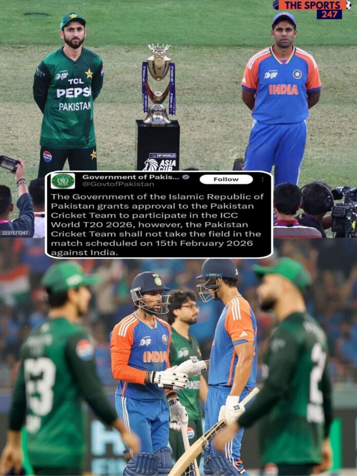 सरकारी बयान में कहा गया, “इस्लामिक रिपब्लिक ऑफ पाकिस्तान की सरकार आईसीसी वर्ल्ड टी20 2026 में भाग लेने के लिए पाकिस्तान क्रिकेट टीम को मंज़ूरी देती है, हालांकि पाकिस्तान क्रिकेट टीम 15 फरवरी 2026 को भारत के खिलाफ निर्धारित मैच में हिस्सा नहीं लेगी।”