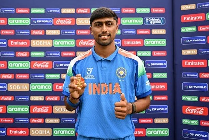 इसके बाद अभिज्ञान कुंडू (41 गेंदों में नाबाद 42) ने डीएलएस पद्धति के तहत भारत को 118 गेंद शेष रहते जीत दिलाई। बारिश से भारत की पारी में देरी हुई, लेकिन खेल दोबारा शुरू होने पर 14 वर्षीय बल्लेबाज़ वैभव सूर्यवंशी (2) तीसरे ओवर में रित्विक अप्पिडी (5 ओवर में 2/24) की गेंद पर बोल्ड हो गए।